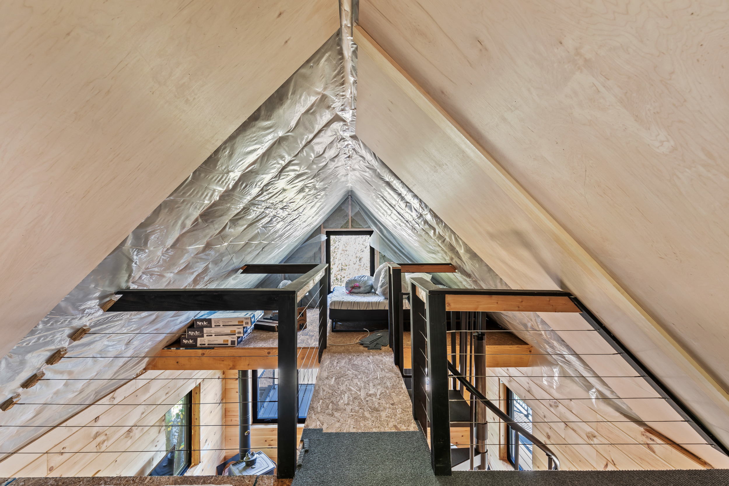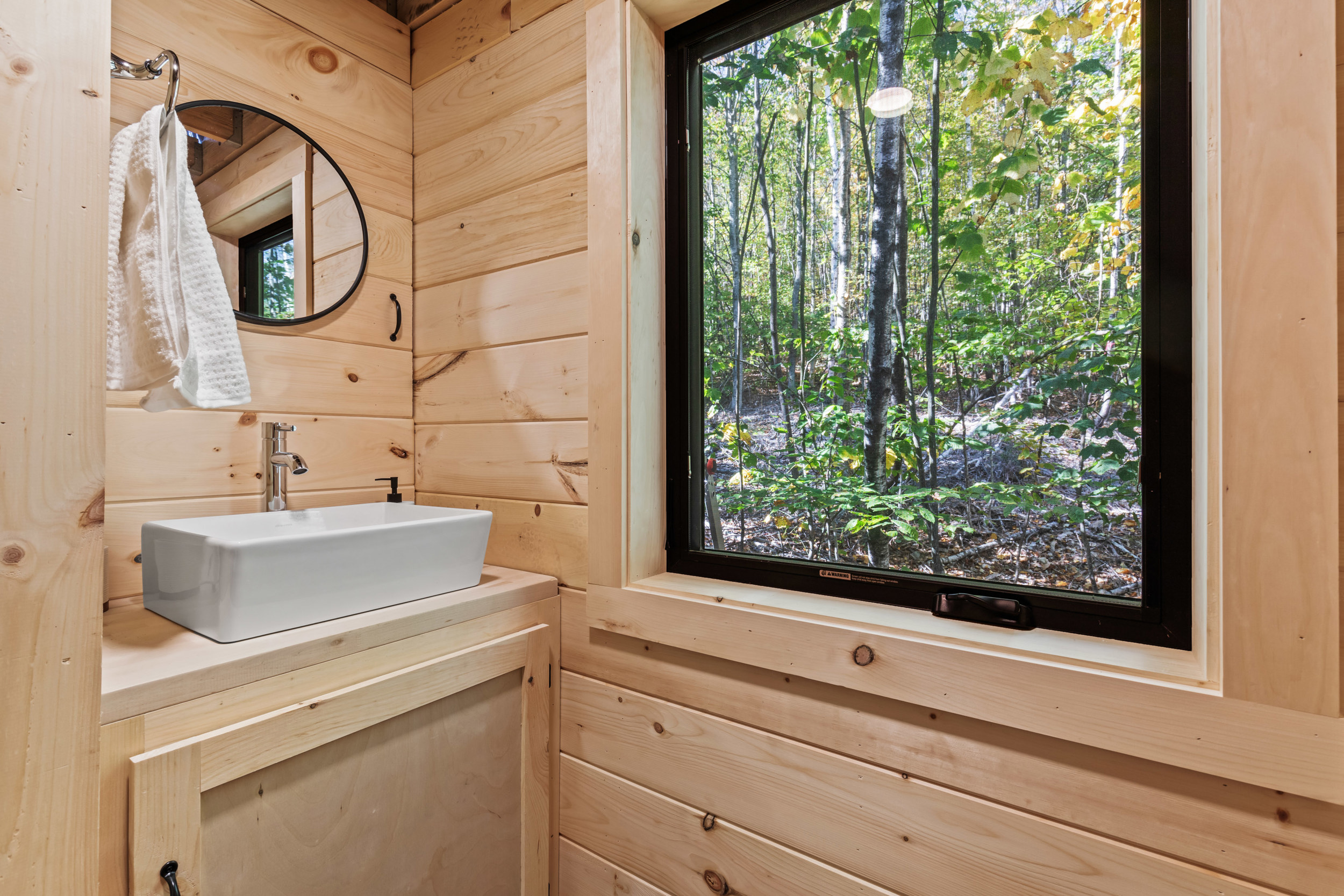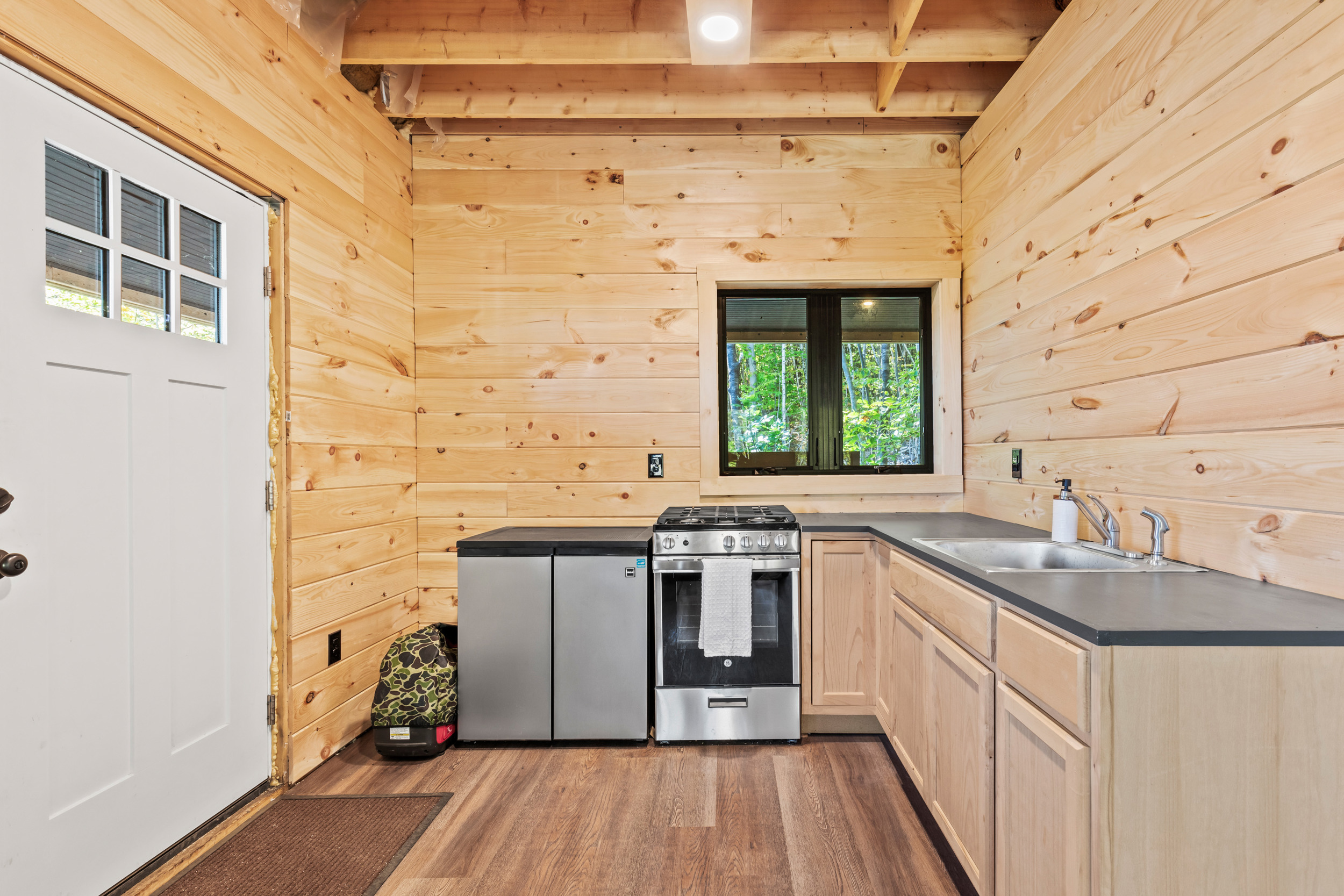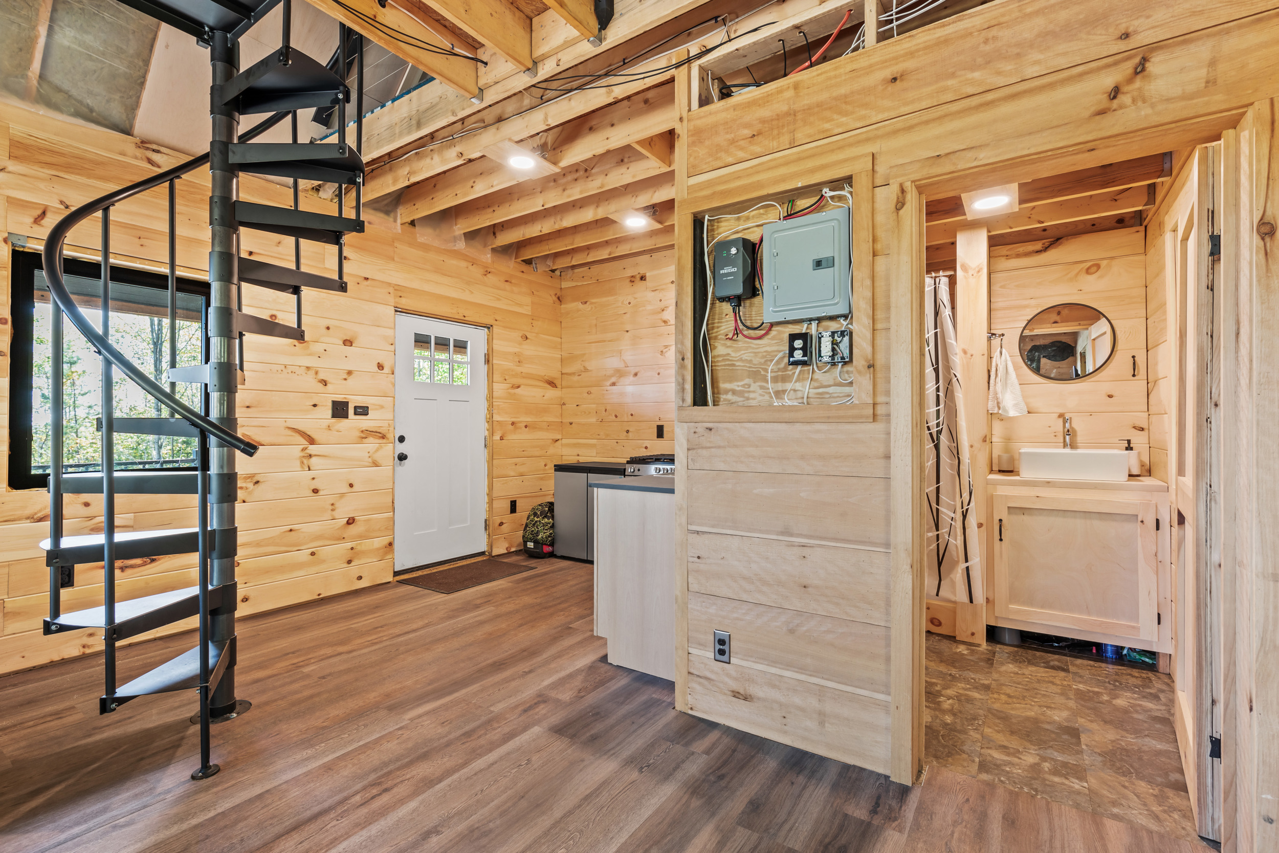 Welcome to your private Maine retreat in Brownfield! Set on 14 acres of untouched land, this off-grid cabin offers the peace and seclusion of the Maine woods with breathtaking views of both the Maine and New Hampshire mountains. Built in 2021, it captures the rustic charm of a classic Maine ''camp'' while offering modern upgrades rarely found in off-grid living. Step inside and you'll be greeted by warm wood interiors, vaulted ceilings, and picture windows that frame the surrounding forest and mountains. The open-concept layout includes a beautifully upgraded kitchen with stainless steel appliances, a gas stove, and a refrigerator. The spacious living area centers around a striking Jøtul fireplace, creating a cozy year-round retreat. The full bathroom blends rustic charm with practical amenities, featuring a shower and composting toilet. A handcrafted spiral staircase leads to two cozy lofts, offering inviting spaces to rest after a day in the woods or mountains. Outside, a large wraparound deck provides the perfect spot to sip your morning coffee, stargaze at night, or simply take in the sweeping mountain views. Sustainable features include solar panels, insulated walls, a water cistern system, composting septic, and a generator hookup, ensuring comfort and peace of mind while enjoying life off the grid. Wildlife sightings are frequent, with deer, moose, and more often passing through the property. Despite its private setting, the cabin is conveniently located just 15 minutes from downtown North Conway and Fryeburg, one hour from Portland, and 2.5 hours from Boston. Escape to 470 Center Conway Road and discover the perfect blend of rustic charm, practical living, and Maine wilderness.